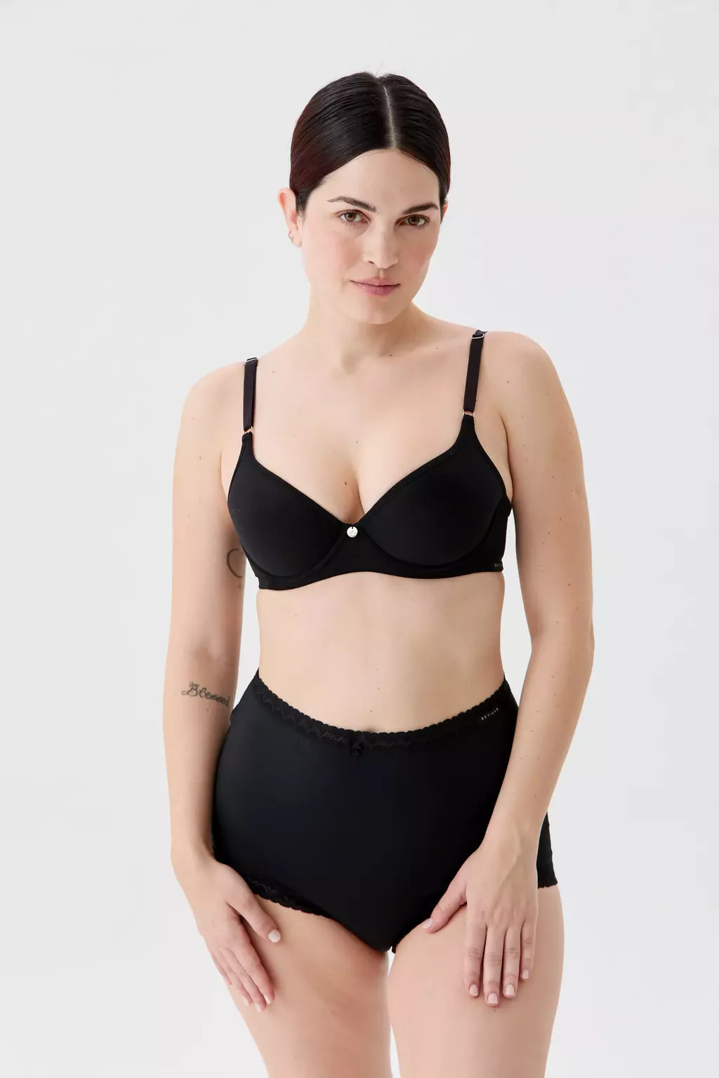 Comodidad sin Igual La taza soft y el aro proporcionan un soporte excepcional, permitiéndote sentirte segura y cómoda durante todo el día. La estructura forrada en tricot de lycra asegura que cada movimiento sea ligero y placentero, sin irritaciones.