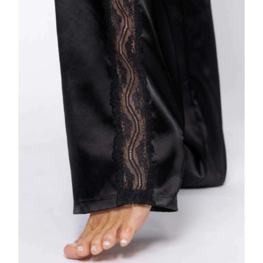 Pantalón satinado con detalles de encaje en costados